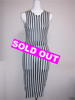 | ボディフィットのニットワンピースです。モノトーンのストライプは縦長効果があります。 |