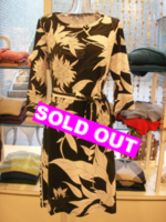 春の新作シルクジャージワンピース。 大胆な大きめのプリント柄がよりラインをきれいに見せてくれます。 細めのひもベルト付で少し短めの7分袖です。 |