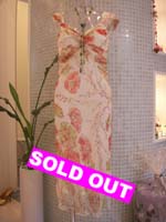 | インポートのシルクシフォンのワンピース。白とも違うバニラ色をベースにオレンジやグリーンのプリントが鮮やかです。ノースリーブよりはばがあり肩から腕にかかるので半袖感覚でお召しいただけます。有名ブランドの物でこのお値段はかなりお買い得です。 |