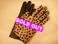 イタリアの老舗ブランドのレザーグローブ。 手の甲部分にハラコを使用したラムスキンのグローブです。こちらも内側にはカシミヤウールが張ってあります。ヒョウ柄は来春に向かってのトレンドの一つ。ぜひ、先取りしてみて下さい。 |