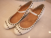 | ラウンドトゥのパンプスでヒールも6,5cmともっとも歩きやすい高さです。マットゴールドのビットがたくさんついていてとってもかわいいです。 |