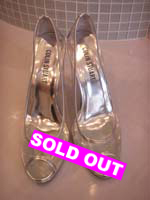 | 夏らしいシルバーとクリアーのパンプス。ヒールの高さの割には前も厚みがあるので安定感があります。こちらはHAND MADEです。 |