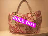 | 白をベースにお花のプリントと刺繍の手の込んだバッグ。内側の生地も鮮やかなピンクになっています。持ち手も長さが最大10cm調整可能です。これからの季節には大活躍 まちがいなしの商品です。 |